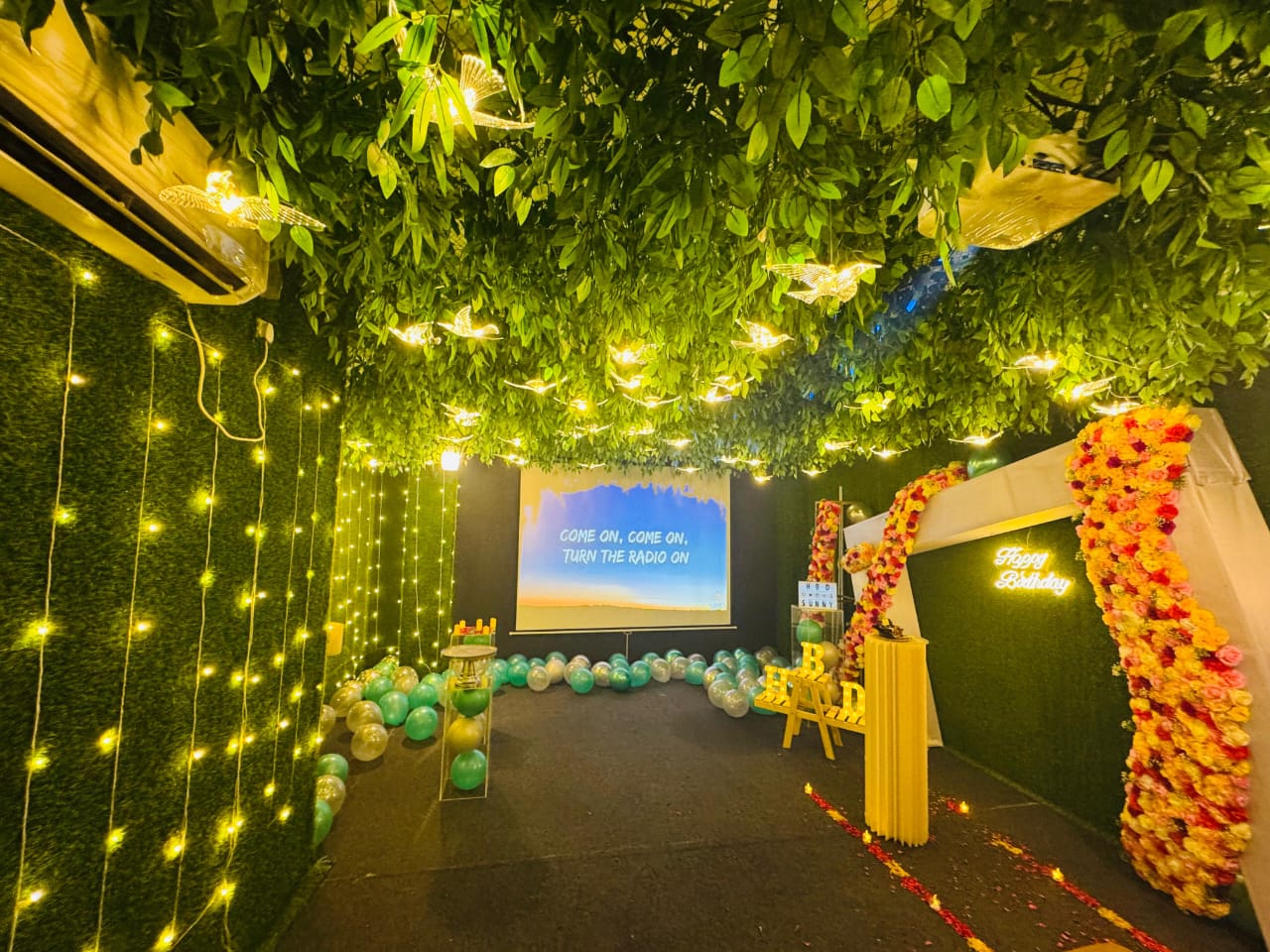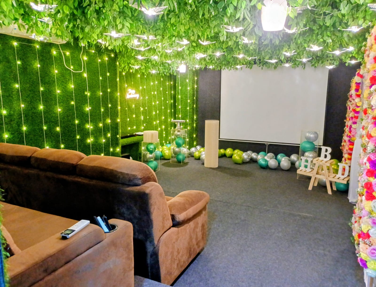 Lotus - Green Theater • ₹299 per extra person. • Massive 120-inch 4K Ultra HD screen for crystal-clear visuals • Immersive Dolby Atmos audio delivers deep, cinematic sound • Great for couples, families, and groups of friends – perfect for any occasion